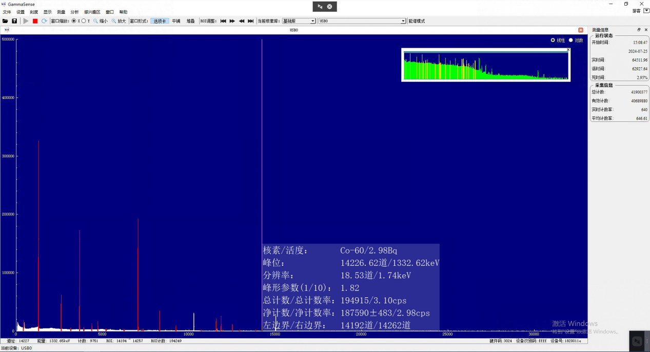 | 實(shí)時(shí)分析 | 側(cè)邊欄實(shí)時(shí)擬合選定峰位,實(shí)時(shí)核素識(shí)別、峰面積計(jì)算 |